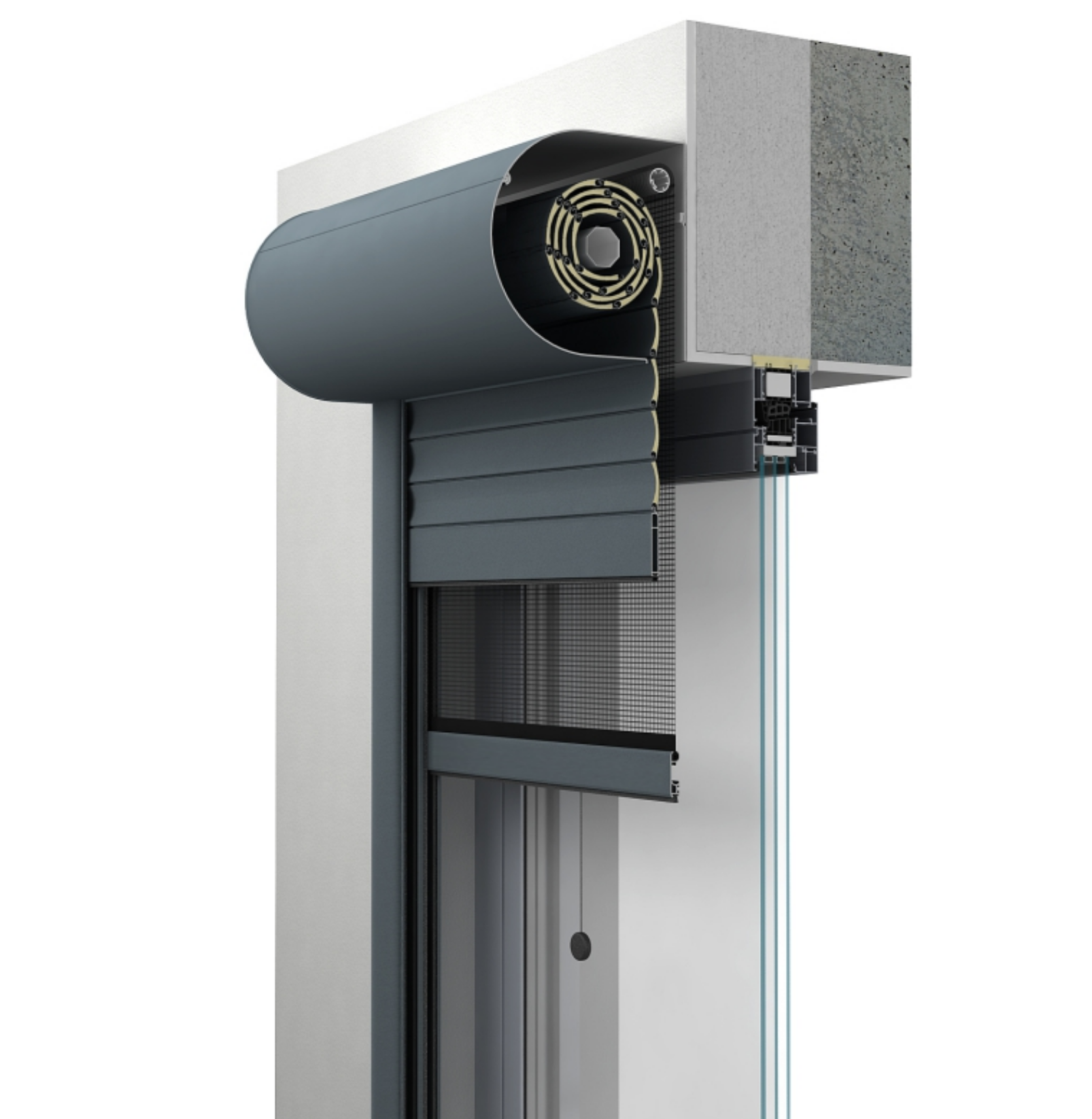 Halbrund-Vorsatzrollladen mit Insektenschutzrollo